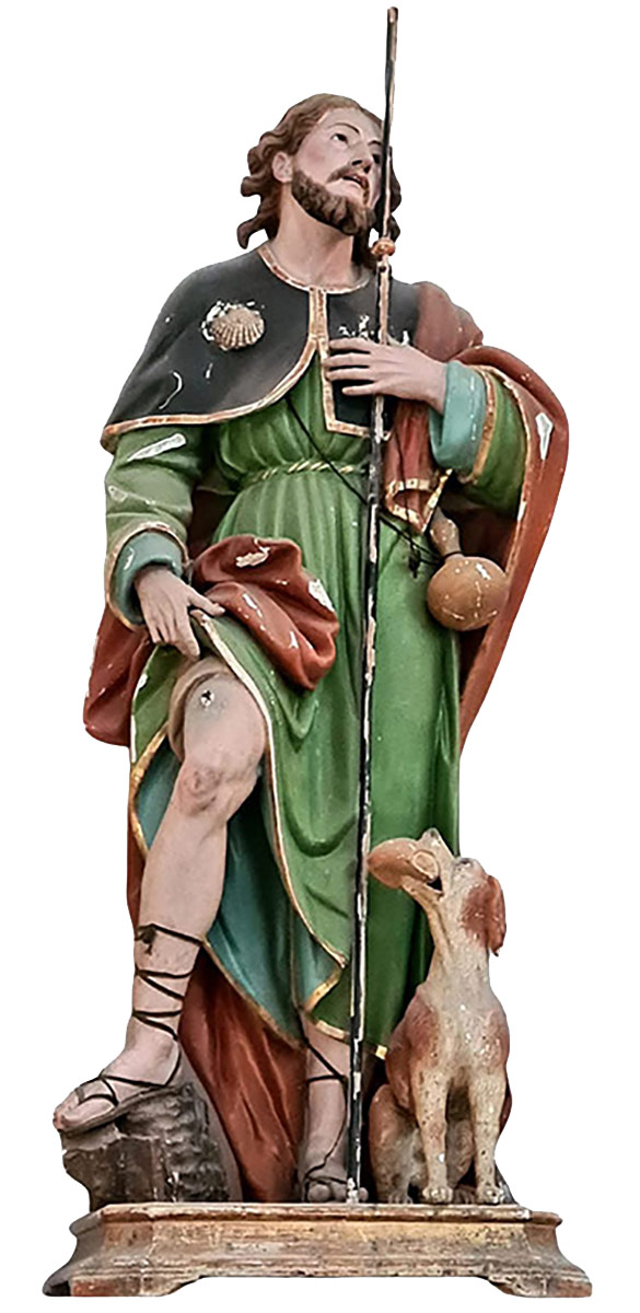 Questa statua, collocata nella nostra chiesa, testimonia la profonda devozione della nostra comunità verso San Rocco, particolarmente venerato nei tempi di difficoltà e o di calamità sanitarie. È un segno di speranza e di protezione, che ricorda il valore della carità, dell’aiuto ai malati e della fiducia nella Provvidenza.