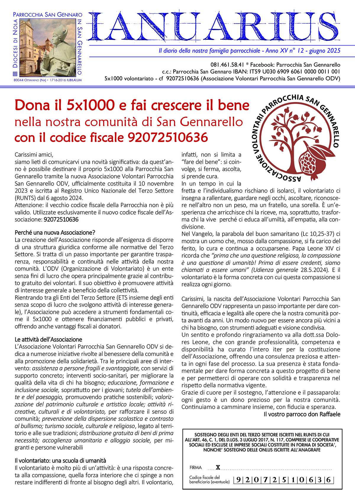 Il diario della nostra famiglia parrocchiale – Anno XV n° 12 – giugno 2025