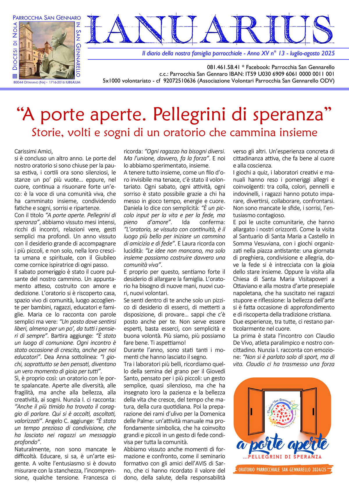 Il diario della nostra famiglia parrocchiale – Anno XV n° 13 – luglio-agosto 2025