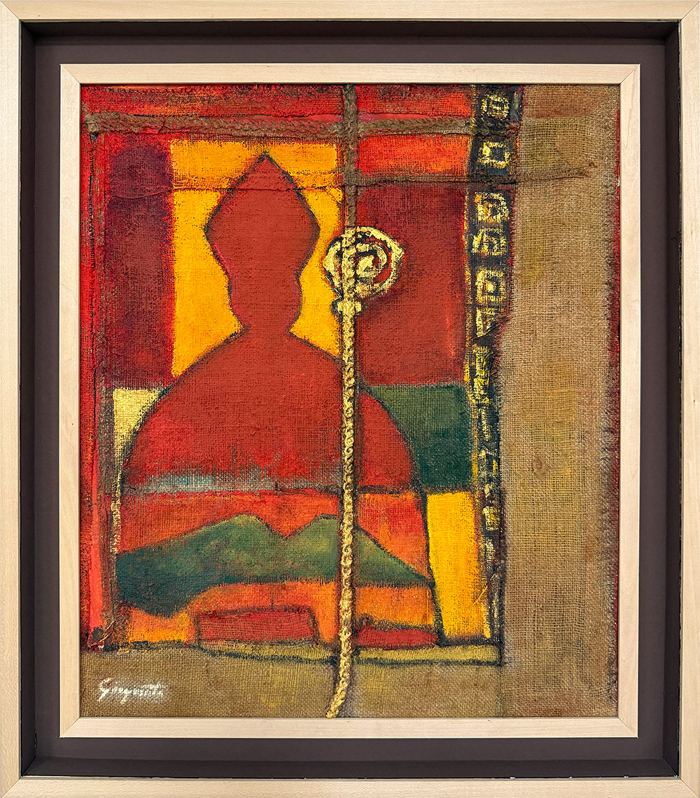 Quest’opera dell’artista Ciro Giaquinto offre una reinterpretazione contemporanea della figura di San Gennaro, patrono di Napoli, attraverso una composizione fortemente simbolica e materica.