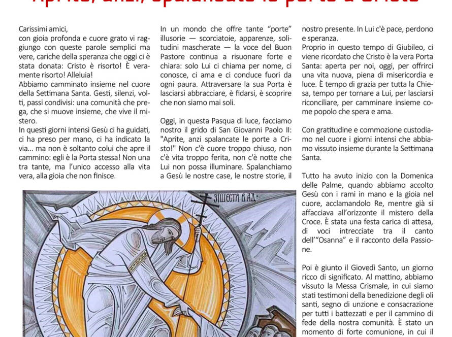 Il diario della nostra famiglia parrocchiale - Anno XV n° 9 - Aprile - Pasqua di Risurrezione 2025 Scarica il file PDF